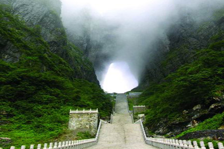 早上8:00長(zhǎng)沙火車站集合后,經(jīng)長(zhǎng)張高速往張家界市,赴天門山國(guó)家森林公園旅游,乘坐“世界第一長(zhǎng)高山客運(yùn)索道(全長(zhǎng)7455米,高差1279米)”, 體驗(yàn)騰云飛翔的刺激震撼,28分鐘到天門山頂:登張家界之巔云夢(mèng)仙頂,俯瞰張家界全景,體驗(yàn)凌空獨(dú)尊的豪情, 游覽東線碧野瑤臺(tái)景區(qū),觀賞奇妙美麗的盆景花園,游覽盆景石區(qū)、天門翻水、北俯視天門、靈泉、靈泉院,登云夢(mèng)仙頂,體驗(yàn)“云生腳下、奇峰盡覽、萬(wàn)象目中”的豪邁感覺(jué)。游西線體驗(yàn)鬼谷棧道的驚心動(dòng)魄,在峭壁云端縱情尖叫。返凌霄臺(tái)欣賞城區(qū)風(fēng)光、領(lǐng)略山水長(zhǎng)卷的磅礴氣勢(shì),攀登 999 級(jí)臺(tái)階的上天梯,抵達(dá)天門洞底,感受造化神奇,盡情欣賞天門洞內(nèi)外的壯麗景色。至天門洞體驗(yàn)自然造化的神奇和震撼沖擊。乘觀光汽車體驗(yàn)99彎通天大道奇絕,沿途觀賞七級(jí)瀑布、金龜馱元寶、將軍峰、箭桿峰等景觀,天門山氣象獨(dú)特,門洞奇絕,植被豐富,歷史悠久,是歷史文化與佛道文化的神秘載體,是自然景觀與人文景觀的完美結(jié)合,故也是蜜月度假必游之地。