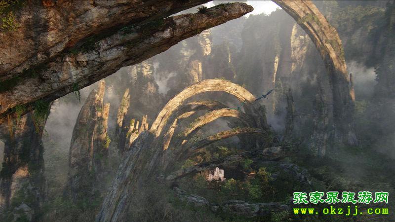 2008年12月份,好萊塢攝影師漢森在張家界進(jìn)行了為期四天的外景拍攝,大量風(fēng)景圖片后來(lái)成為美國(guó)科幻大片《阿凡達(dá)》中“潘多拉星球”各種元素的原型,其中“南天一柱”圖片就成為“哈利路亞山”即懸浮山的原型?!栋⒎策_(dá)》在全球熱播后,海內(nèi)外億萬(wàn)觀眾更是對(duì)“哈利路亞山”原型地張家界心向神往。
