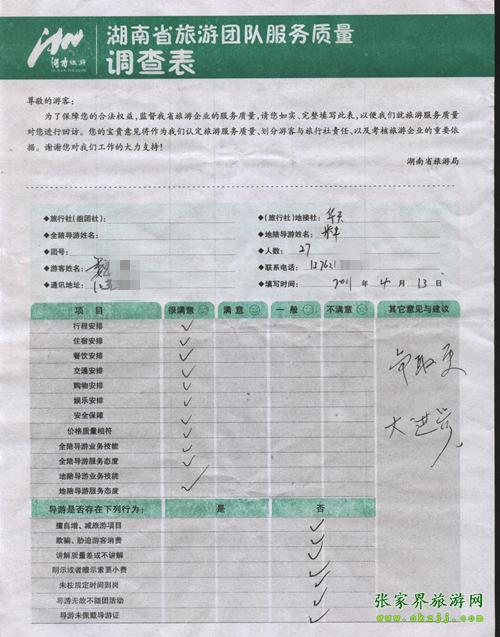 2011年4月13日魏先生一行27人旅游質(zhì)量反饋:爭(zhēng)取更大進(jìn)步