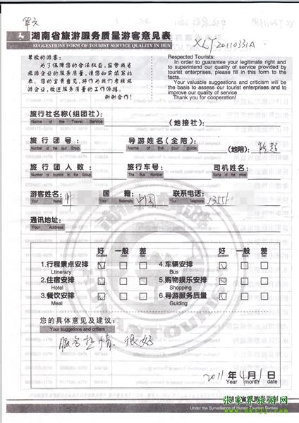 - 2011年10月26日張小姐一行18人旅游質(zhì)量反饋 [10482]