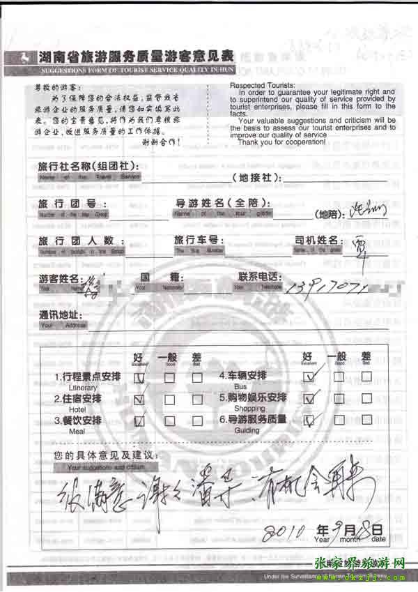 2010年9月18日華先生旅游質(zhì)量反饋:導(dǎo)游很好,有機(jī)會(huì)再來(lái)