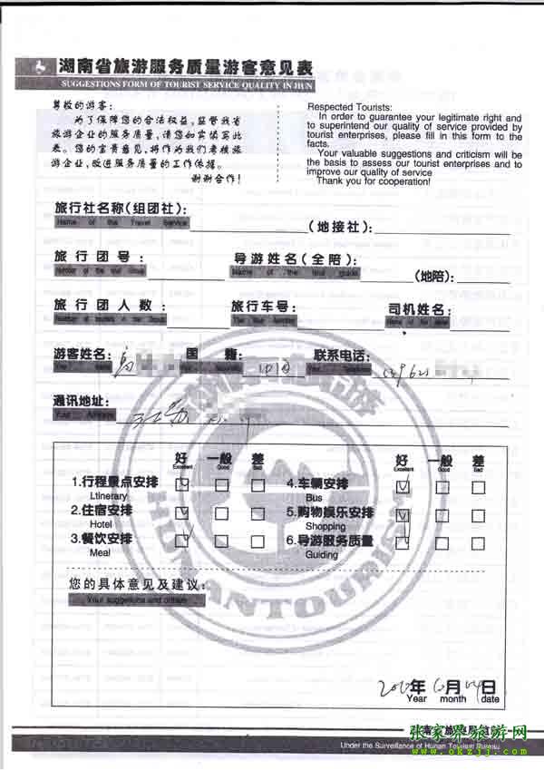 2010年10月4日高先生旅游質(zhì)量反饋