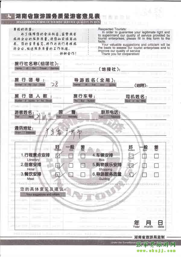 2010年7月28日廣東劉先生旅游質(zhì)量反饋