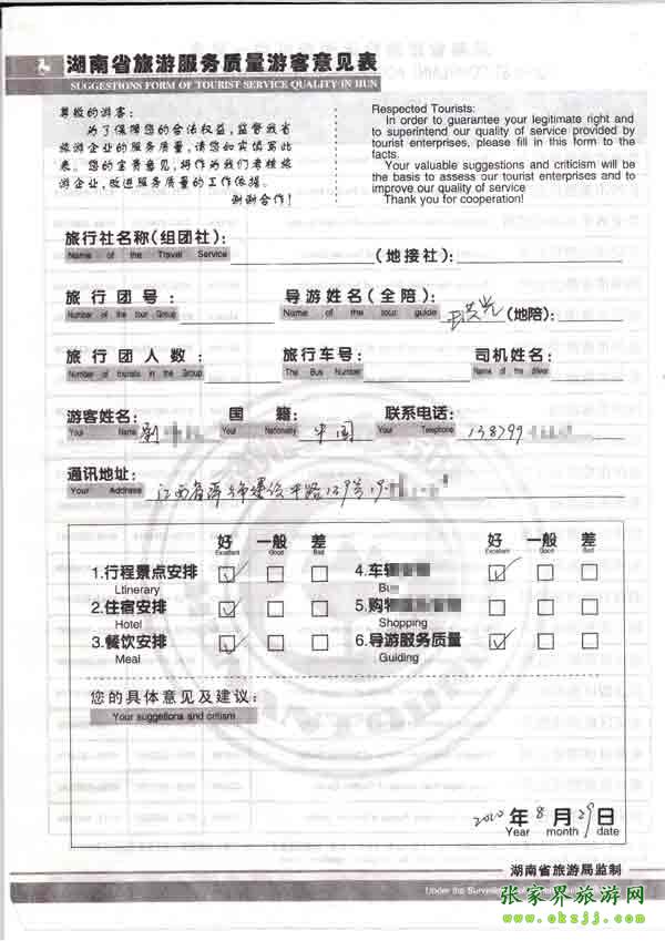 2010年8月29日江西劉先生旅游質(zhì)量反饋