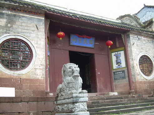 這是一處具有濃厚民族特色的建筑群,有大門(mén)、正殿、戲臺(tái)20多間屋宇,并有天井、天池、回廊,還設(shè)有“五福”、“六順”兩門(mén)。