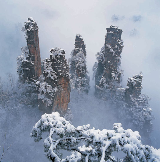 D3:早餐后再次乘環(huán)保車至峰林之王――天子山【需乘纜車上下自費單程52元/人往返104元/人,纜車單程時間約15分鐘;也可徒步上下山時間各約2小時】,抵達山頂后便可看到<阿凡達>電影中那大片的懸浮山――西海石林、御筆峰、仙女獻花、云青巖等(游程約2小時);如山頂時間充足推薦,需乘車約45分鐘至袁家界, 便可欣賞到《阿凡達》電影中多次出現(xiàn)的弧形橋原型――袁家界天下第一橋(雖然經(jīng)電影多次加工,但是橋面左部下側(cè)快要與橋面主體剝離的石英砂巖在全球找不出第二塊,特色鮮明,一眼就可以看出來)、還有與《阿凡達》海報主山頭相差無幾的張家界“南天一柱”、 以及迷魂臺觀景臺方向遠眺羊角寨全景(通過電影特效剪輯以后在影片中多次出現(xiàn));在欣賞電影場景的同時推薦了解一下袁家界當?shù)赝林r(nóng)民的生活――游袁家寨子(自費110元/人,約50分鐘) ;袁家界游覽完后自費乘百龍?zhí)焯菹律健?6元/人】;下山后乘環(huán)保車至藝術(shù)長廊—十里畫廊(步行游覽1.5小時左右,乘小火車游覽40分鐘左右,乘觀光小火車往返40元/人自理):觀壽星迎賓,采藥老人,三姐妹峰等,之后乘環(huán)保車再次從電影中走出,晚送機,結(jié)束愉快旅程!!