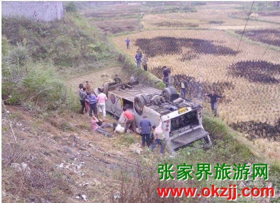 張家界旅游,車子的安全是不容小覷的。這不,你看這兒就發(fā)生旅游車交通事故了